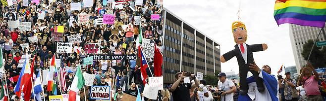 최근 대선 이후 캘리포니아주 로스앤젤레스에 있는 UCLA 인근에서는 500여명이 거리로 몰려나와 트럼프의 당선에 저항했다.