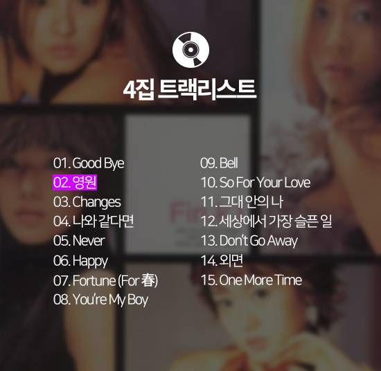 이듬해 3월 마지막 정규앨범 4집 ‘영원’을 발표한 핑클은 타이틀곡을 ‘영원(永遠)’으로 정하고 활동을 펼쳤다. 이 외에도 더블 타이틀곡으로 내세웠던 ‘네버(NEVER)’, 배우 송혜교가 감상평을 남겨 이슈가 된 ‘포츈(For 春)’, 후속곡 ‘돈 고 어웨이(Don’t Go Away)’ 등이 인기를 끌었다.