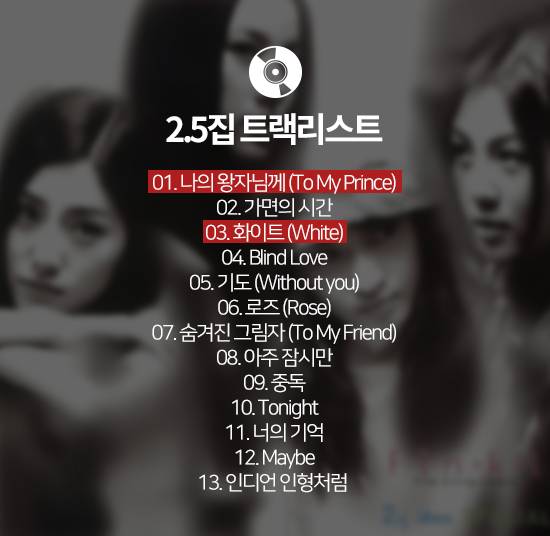 핑클의 겨울 대표곡 ‘화이트(White)’ 또한 이 앨범의 수록곡이다. 이 노래는 지난해 12월 여성 듀오 다비치가 리메이크해 원곡이 다시 관심을 끌기도 했다.