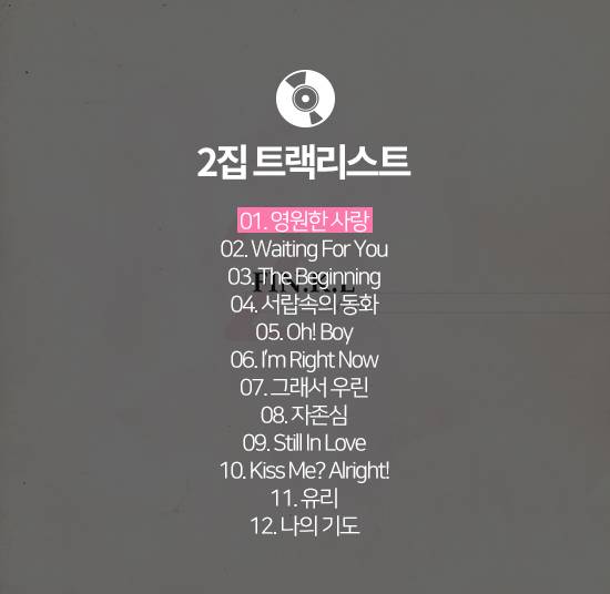 타이틀곡 ‘영원한 사랑’은 핑클의 요정 콘셉트를 더욱 극대화시켜준 노래다. 대중적인 멜로디와 따라 하기 쉬운 안무는 당시 선풍적인 인기를 끌었고, 특히 새끼손가락을 들고 부르는 후렴 부분 ‘약속해줘’는 ‘내 남자 친구에게’ 속 ‘난 니꺼야’와 함께 핑클의 대표적인 킬링 파트다.