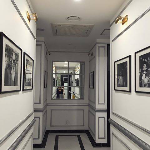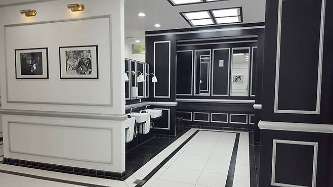 흑백톤으로 인테리어된 화장실 내부에는 사진과 그림이 곳곳에 걸려 화장실이 아니라 갤러리나 카페 처럼 보이기도 한다.