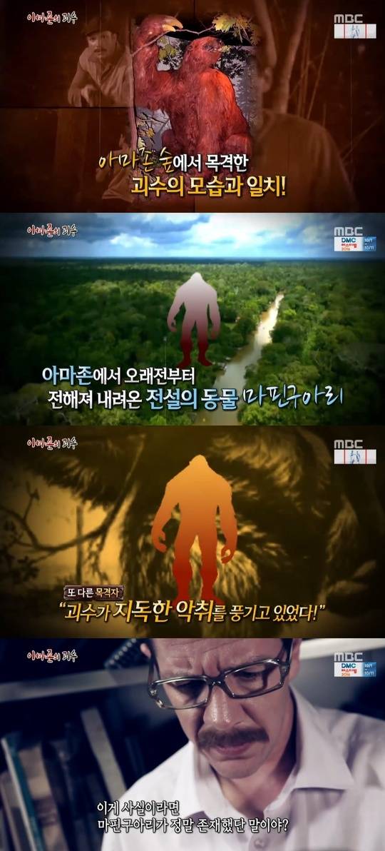 10월 2일 방송된 MBC '신비한TV 서프라이즈'에 따르면 1970년대 브라질 아마존 숲에서 붉은 털이 온몸을 뒤덮고 있고 끔찍한 악취를 풍기는 괴수가 발견됐다.