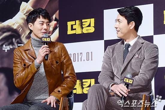 이날 정우성은 "시나리오를 받았을 때 인성이가 캐스팅 되어있던 것이 '더 킹' 출연의 부수적인 요건에서는 가장 좋은 이유였다."며 "인성이가 데뷔할 때부터 같은 회사에서 봐왔지만 당시 저는 스타였고 거리감이 본의 아니게 생길 수 밖에 없었다. 가까이 지내지 못한 후배였기 때문에 아쉬움이 있었다. 동시대를 살면서 이런 시나리오가 왔을 때 같이 작업을 하지 않으면 이 후배와 언제 또 함께 해볼 수 있겠나 하는 생각을 했다."고 전했다.