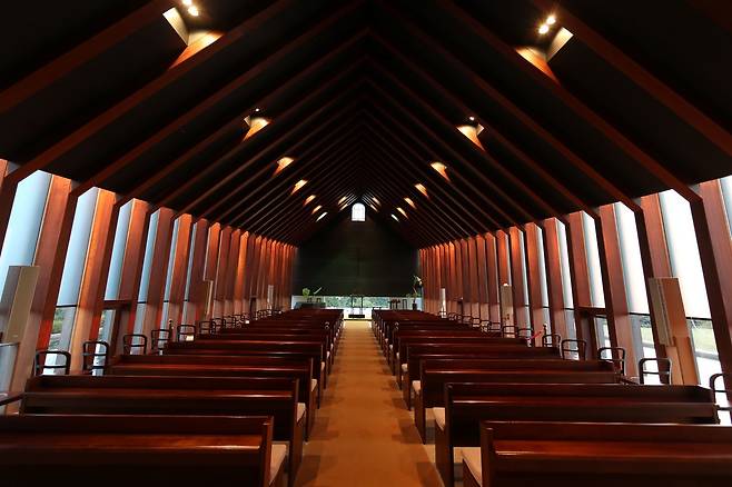 예배당은 안에서 봤을 때도 아름답다. 사방이 유리로 돼 있어, 교회를 둘러싼 풍경이 햇빛과 함께 예배당 안으로 쏟아져 들어온다. 하나 방주교회는 건축 명소이기 전에 어디까지나 교회다. 누구에게나 열려 있지만, 내부 사진 촬영은 금지돼 있다. 예배 시간에는 소란스러운 행동을 삼가야 한다.