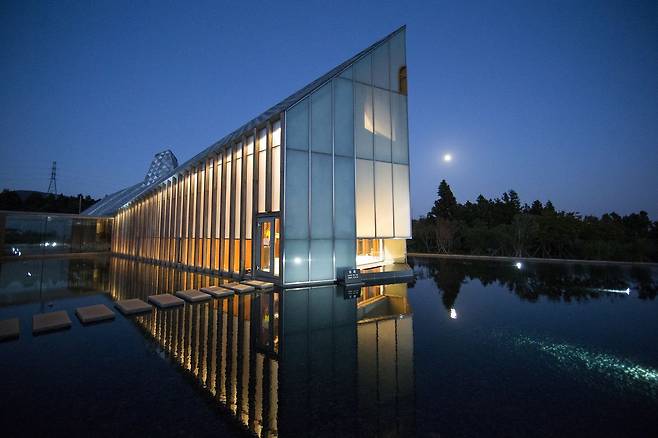 성경 속 ‘노아의 방주’를 떠올리게 하는 공간이 제주 안덕면 상천리에 있다. 바로 방주교회(bangjuchurch.org)다. 네모반듯한 인공 연못 위로 교회 건물이 떠 있는듯한 모습이 신기해 교인 못지않게 관광객에게도 입소문이 퍼진 곳이다. 연못 물과 유리로 된 교회 벽에 제주의 풍경이 은은하게 비쳐 아름답다.