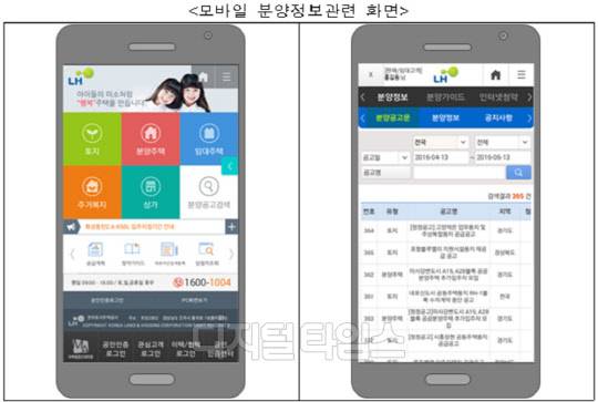 한국토지주택공사(LH)는 지난달 30일부터 모바일을 통해 토지, 주택, 상가 등의 분양 정보를 조회할 수 있는 'LH 청약센터 모바일 웹&앱 서비스'를 실시 중이라고 4일 밝혔다. LH는 1개월 평균 청약센터 분양공고문 조회수가 100만건에 이르는 점을 감안해 이용자들이 쉽고 빠르게 LH 분양정보를 접할 수 있도록 모바일 서비스를 구축했다.