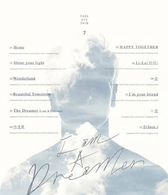 소속사 글러브엔터테인먼트는 1일 공식 SNS 계정을 통해 오는 3일 공개되는 박효신의 정규 7집 '아이 엠 어 드리머'(I am A Dreamer)의 트랙리스트를 공개했다.