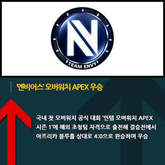 국내 첫 오버워치 공식 대회 '인텔 오버워치 APEX 시즌 1'에 해외 초청팀 자격으로 출전해 결승전에서 아프리카 블루를 상대로 4:0으로 완승하며 우승