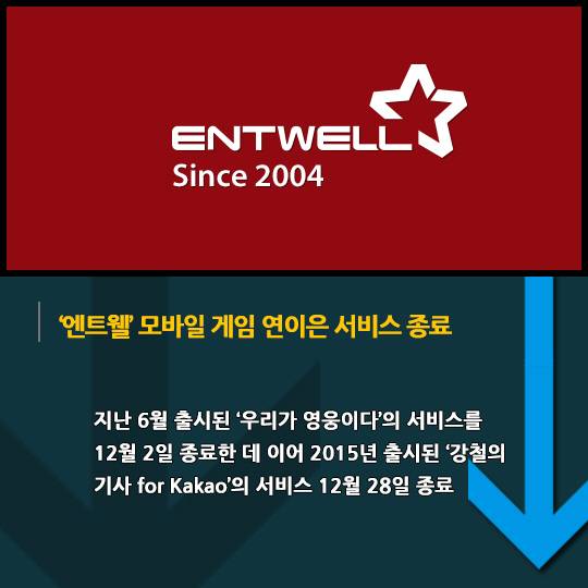 - '엔트웰' 모바일 게임 연이은 서비스 종료