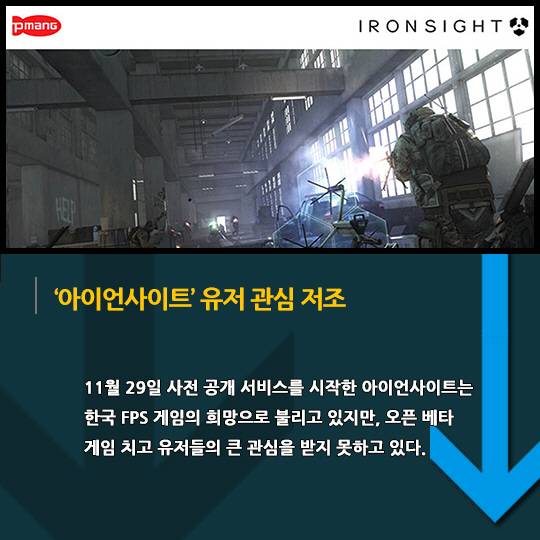 11월 29일 사전 공개 서비스를 시작한 아이언사이트는 한국 FPS 게임의 희망으로 불리고 있지만, 오픈 베타 게임 치고 유저들의 큰 관심을 받지 못하고 있다.