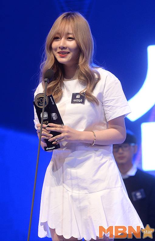 BJ 아리연습중이 신인상을 받고 소감을 전하고 있다.