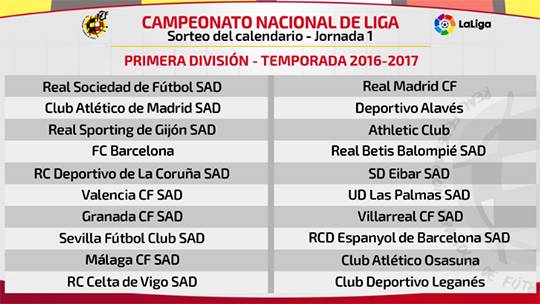 라리가, 2016/2017시즌 일정 발표..엘 클라시코는 12월
