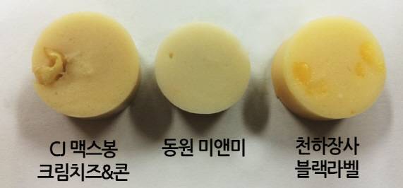 마지막으로 맥스봉 크림치즈&콘은 옥수수 알갱이가 씹혀 지루하지 않고 맥주 안주로 좋겠다는 의견이 많았습니다. 미앤미는 촉촉하고 깔끔하지만 소시지 특유의 맛과 향이 부족했고, 천하장사 블랙라벨은 치즈의 향은 진하지만 맛은 약하고 쫀득한 어묵의 맛이 강하다는 반응이 대부분이었습니다.