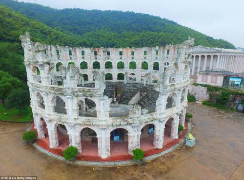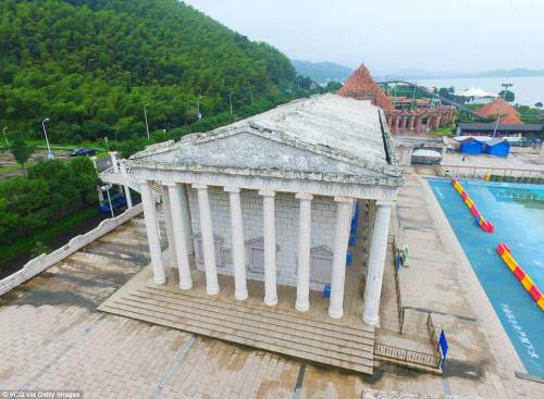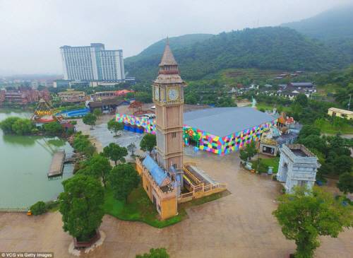 9일(현지시간) 영국 데일리메일은 세계문화유산으로 지정된 유서 깊은 건축물 등을 한 곳에서 볼 수 있게 됐다며 중국 저장성 닝보에 문을 연 테마파크 전경을 소개했다.