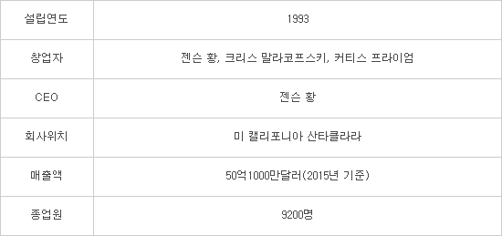 엔비디아는 대만에서 태어난 젠슨 황이 설립했다. 그는 미국으로 건너가 오리건 대학과 스탠퍼드 대학을 졸업한 후 1993년 엔비디아를 설립했다. 초창기에는 중앙처리장치(CPU)를 생산·기획했지만 인텔 등 선점 기업 때문에 시장 진입이 어렵다고 판단해 GPU로 눈길을 돌렸다. 1999년 세계 최초로 GPU를 선보인 후 지금까지 10억개 이상 GPU를 판매했다. 다중 코어 GPU는 뛰어난 다중 연산이나 숫자, 알고리즘 처리 능력을 자랑한다.