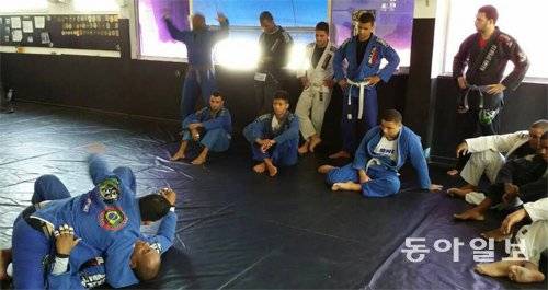 하지만 지난달 열린 리우데자네이루 올림픽은 ‘따봉’의 나라 브라질에 대한 관심을 높여줬다. 덩달아 ‘브라질리안 주짓수(Brazilian jiu-jitsu·브라질 유술)’의 인기도 높아졌다. 주짓수는 크게 브라질리안 주짓수와 유럽식 주짓수로 나뉜다. 브라질리안 주짓수는 타격을 금지하고 관절 꺾기, 조르기 등의 기술을 주로 구사한다. 올림픽 열기가 한창이던 지난달 리우데자네이루의 한 주짓수 체육관에서 직접 주짓수를 체험해 봤다. 리우데자네이루는 1925년 세계 최초로 브라질리안 주짓수 체육관이 문을 연 도시다.