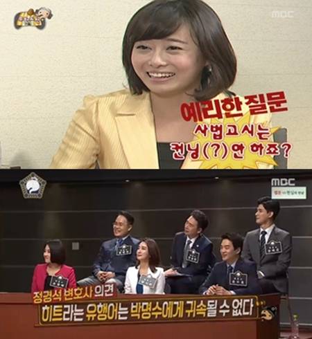 경험이 있어서였을까. '분쟁조정위원회'에서도 무한도전은 총 7명의 변호사를 초청, 실제 법정 공방을 방불케 하는 연출로 현실감을 부각시켰다. 두 차례 법정 공방에 등장한 최단비, 장진영, 양지민 변호사 등은 '무한도전'을 통해 자신의 이름을 알리기도 했다.