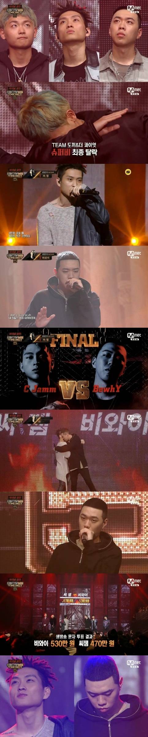 15일 방송된 엠넷 ‘쇼미더머니5’에서는 비와이, 씨잼, 슈퍼비 등 최종 3인의 파이널 무대가 그려졌다.