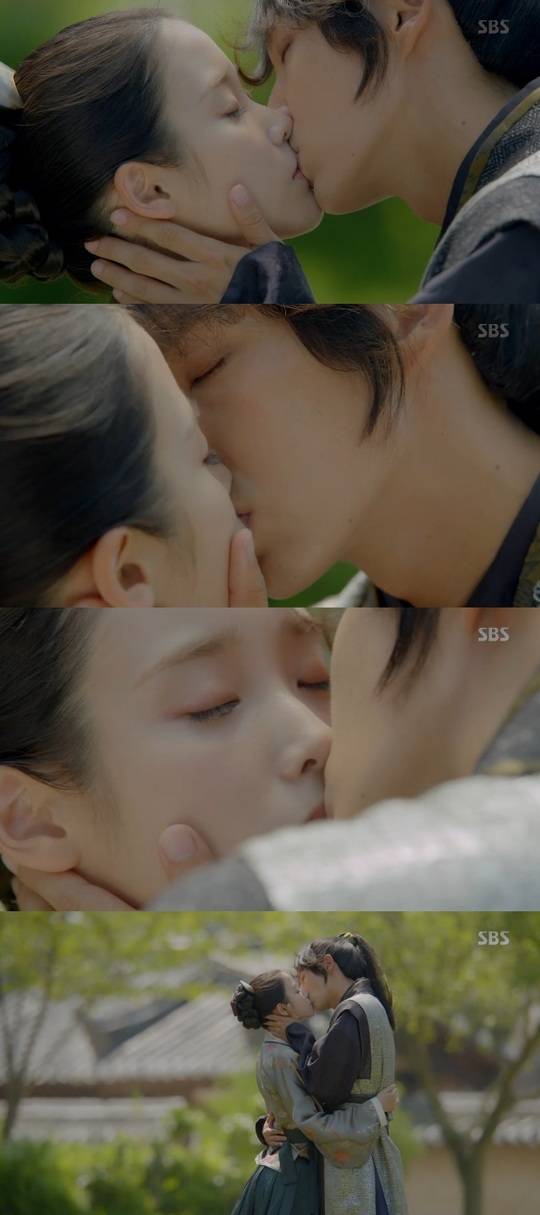 그런 왕소에게 해수가 먼저 입을 맞추며 “다음부터는 절대 잊지 마십시오”라고 말하자 왕소가 해수의 허리를 안고 키스했다. 두 사람이 드디어 서로의 마음을 확인하고 입을 맞추며 연인이 됐다. (사진=SBS 캡처)