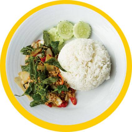 태국에서 쉽게 찾아볼 수 있는 허브 중 하나인 바질(크라파오Krapow)을 다진 돼지고기와 함께 짭짤하게 볶아 하얀 쌀밥과 함께 먹는 한 끼 메뉴. 보통 달걀 프라이와 함께 나오며 돼지고기 대신 닭고기나 쇠고기를 사용하기도 한다.
