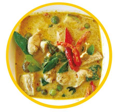 태국 카레는 고추와 라임 등을 향신료와 함께 갈아 장처럼 만든 것으로 재료에 따라 레드 카레, 옐로 카레, 그린 카레 등 각기 다른 색과 맛을 가졌다. 태국말로 깽이라 부르며 코코넛 밀크를 넣어 달달하고 식감이 부드럽다. 카레와 함께 자스민 라이스나 쌀국수를 곁들인다.