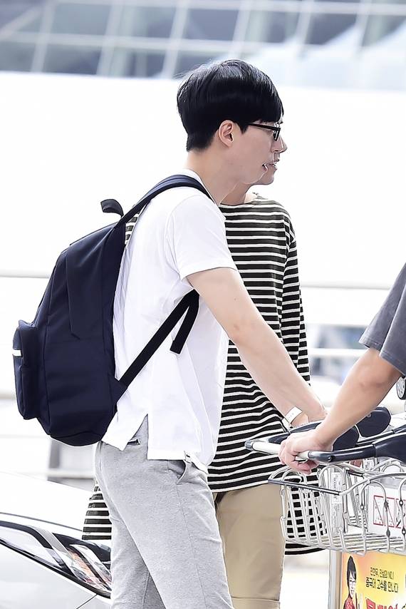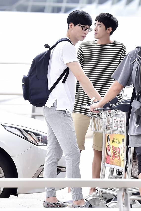 유재석이 훈내 가득한 놈코어룩으로 공항패션을 완성했다.