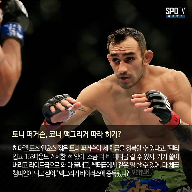 9연승을 달린 퍼거슨은 코너 맥그리거가 말한 것처럼 세 체급을 정복할 수 있다고 큰소리친다.