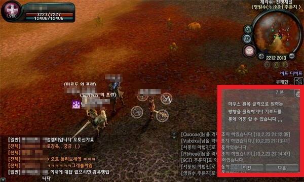 ▲ 만레벨이 아닌데도 10일이 넘는 기간 동안 경험치가 0%에 멈춰있다 ▲ 60레벨임에도 초보 이용자들에게 제공되는 도움말 창이 화면에 보인다는 점(다시 열지 않기 한번만 누르면 이후로는 안 보임) ▲ 캐릭터 최초 생성에 제공하는 기본 물약을 60레벨 캐릭터가 들고 있다는 점 ▲ 60레벨 필수 스킬들이 단축창에 하나도 등록되어 있지 않다는 점 등입니다.