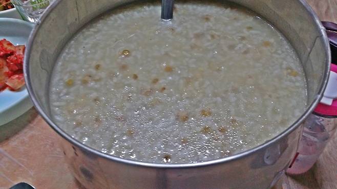 | ▲ 닭코스요리에서 마무리로 나오는 녹두죽 역시 전문점의 죽 못지않다. |