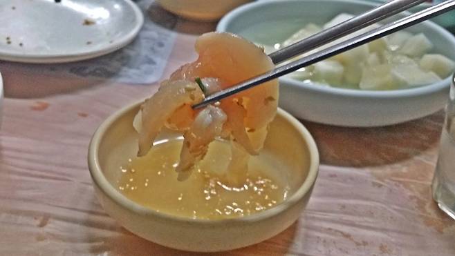 | ▲ 닭육회는 차진데다 씹을수록 솟아나는 감칠맛이 입맛을 사로잡는다. |