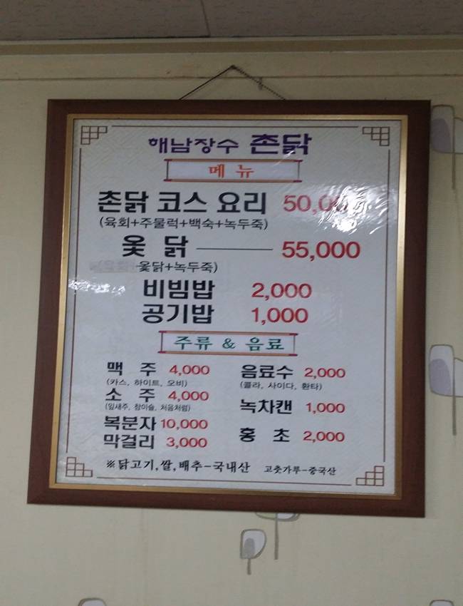 | ▲ 촌닭코스요리는 한 마리에 50000원으로 착하다. |