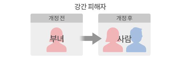 국내에서 여성을 강간죄로 처벌할 수 있는 기반은 2012년 말 만들어졌다. 국회는 나주 초등생 성폭행 사건, 만삭 주부 성폭행 사건 등이 잇따라 발생하자 '아동·여성 대상 성폭력 대책 특별위원회'를 구성했고, 그해 11월 형법 개정안 등 6개 법안을 통과시켰다. 2013년 시행된 개정 형법은 강간 피해자 범주를 '부녀(婦女)'에서 '사람'으로 넓혔다. 이전 형법은 '폭행 또는 협박으로 부녀를 강간한 자는 3년 이상의 유기징역에 처한다'고 규정, 여성이 남성을 강간하는 경우 강간죄가 아닌 강제추행죄로 처벌해야만 했다. 강제추행죄는 처벌 수준이 강간죄에 비해 낮다.