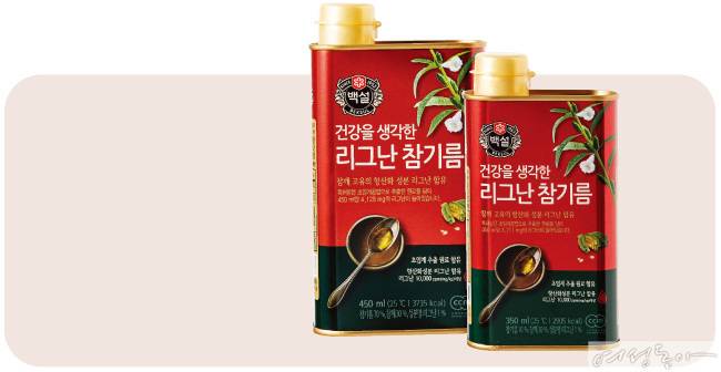 이에 리그난을 간편하게 섭취할 수 있는 방법으로 참깨를 주원료로 사용하는 참기름이 각광받고 있다. 참기름은 대부분의 가정에서 음식을 만들 때 고소한 맛과 향을 더하기 위해 자주 사용하는 식재료이기 때문이다. 백설 건강을 생각한 리그난 참기름 1큰술을 먹으면 무려 아마씨 1큰술과 같은 수준의 리그난을 섭취할 수 있다. 참기름 고를 땐 ‘리그난 함유량’ 확인하세요 참기름을 구매할 때는 리그난 함유량을 확인하는 것이 중요하다. 참깨의 품질과 참기름 추출 방식에 따라 리그난 함유량이 달라지기 때문이다. 리그난 함유량이 높은 참기름을 선택하는 것, 우리 가족 건강 밥상의 시작이다. 리그난 함량을 높인 백설 건강을 생각한 리그난 참기름 리그난을 10,000ppm 이상 함유한 제품으로, 리그난 함유량을 보증하는 유일한 참기름이다. 백설만의 특허 받은 초임계 공법으로 참기름을 추출해 참깨 본연의 깔끔하고 고소한 맛과 향을 그대로 담았다. 다양한 요리에 활용할 수 있으며 음식의 맛과 향을 살려준다. 최근 제품 패키지 리뉴얼을 통해 제품 원료인 참깨 꽃과 참깨의 모습을 담아 고급스러움을 더했다.