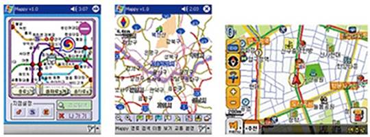 이 밖에 파인디지털의 ‘파인드라이브’, 현대오토넷의 ‘폰터스’, 지오텔의 ‘엑스로드’, 아이스테이션의 ‘아이스테이션’ 등이 속속 등장했다. 티펙(TPEG)이라는 신기술도 생겼다. 티펙은 라디오 회사 등과 같은 교통 정보 제공 사업자가 실시간으로 제공하는 교통 정보를 경로 탐색에 반영한 기술이다.