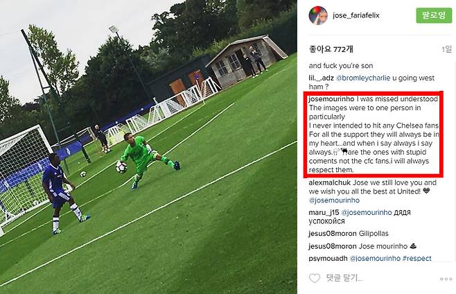 [풋볼리스트] 김동환 기자= 새 시즌에 앞서 SNS와 이별을 고했던 주제 무리뉴 감독이 돌아왔다. 자신의 아들인 주제 무리뉴 주니어의 SNS에 분노에 찬 댓글을 달았다. 논란이 일자 사과했다.