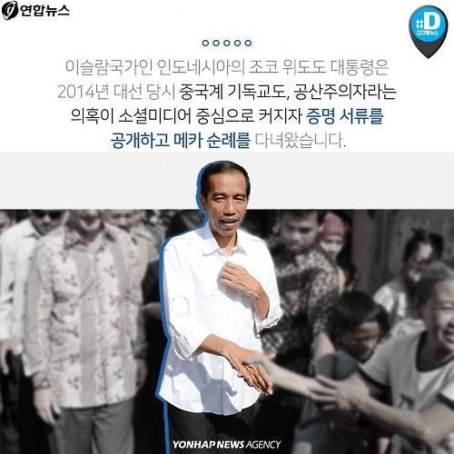 이슬람국가인 인도네시아의 조코 위도도 대통령은 2014년 대선 당시 중국계 기독교도, 공산주의자라는 의혹이 소셜미디어 중심으로 커지자 증명 서류를 공개하고 메카 순례를 다녀왔습니다.