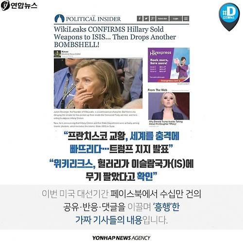 이번 미국 대선기간 페이스북에서 수십만 건의 공유·반응·댓글을 이끌며 ‘흥행’한 가짜 기사들의 내용입니다.