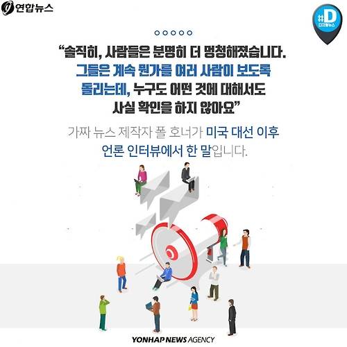 “솔직히, 사람들은 분명히 더 멍청해졌습니다. 그들은 계속 뭔가를 여러 사람이 보도록 돌리는데, 누구도 어떤 것에 대해서도 사실 확인을 하지 않아요”가짜 뉴스 제작자 폴 호너가 미국 대선 이후 언론 인터뷰에서 한 말입니다.