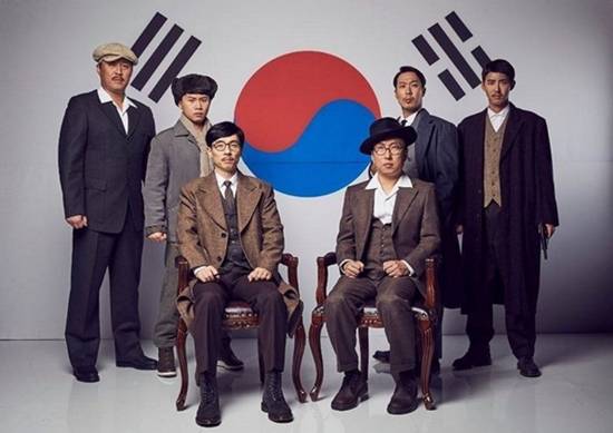 공개된 사진에는 유재석 박명수 정준하 하하 광희 양세형이 독립 투사로 변신해 태극기 앞에서 다소 근엄한 표정을 짓고 있다.