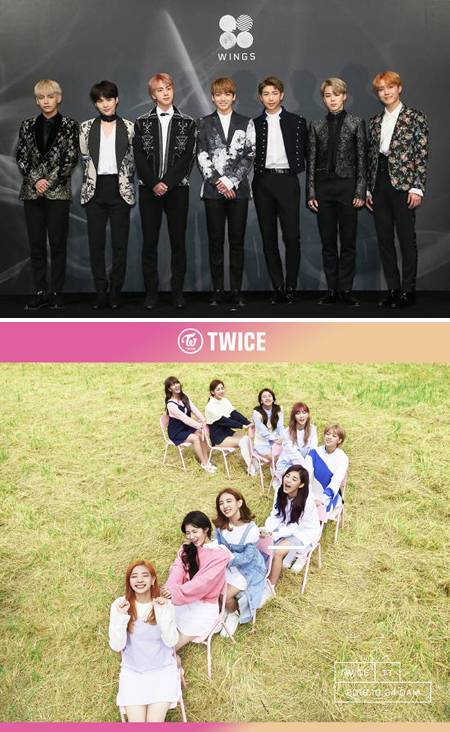 | 연작 앨범이 아이돌 음악계의 새 경향으로 자리잡고 있다. ‘학교 3부작’ ‘청춘 3부작’으로 팬덤을 다진 방탄소년단(위). ‘CHEER UP’으로 성공을 거둔 뒤 24일 신작 ‘TWICEcoaster: LANE1’을 낸 트와이스. 빅히트엔터테인먼트·JYP엔터테인먼트 제공 |