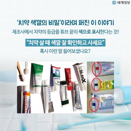 [카드뉴스] 치약 튜브 끝 네모 색깔의 진실
