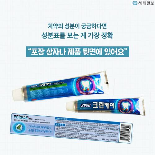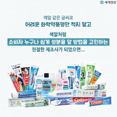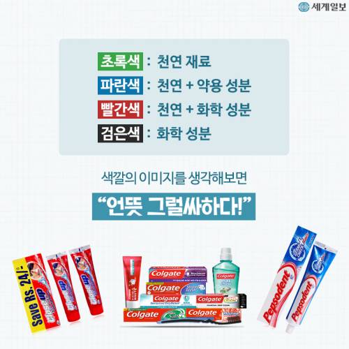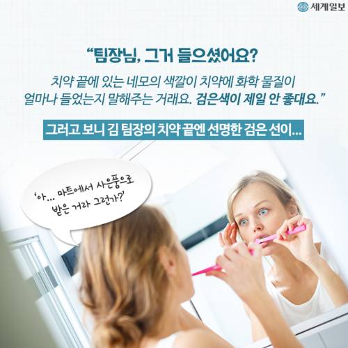 "치약 끝에 있는 네모 색깔을 보면 화학 물질이 얼마나 들어있는지 알 수 있대요"