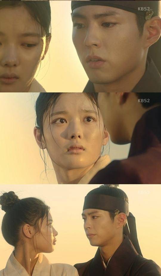겁에 질린 라온과 이영의 눈에는 눈물이 가득찼다. 그리고 두 사람의 얼굴이 클로즈업되면서 ‘구르미 그린 달빛’ OST가 흘러 나왔다.