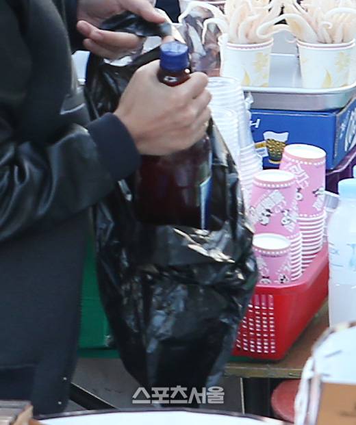 소주(왼쪽)가 생수병에 옮겨지더니..