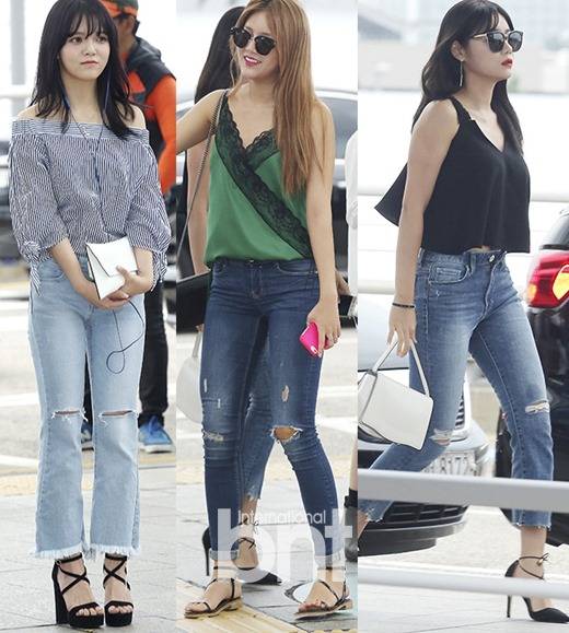 그룹 AOA와 여자친구의 공항룩 포인트는 바로 데님. 소녀처럼 풋풋한 매력과 따라하고 싶은 트렌디함으로 무장한 이들의 데님 활용법을 살펴보자.