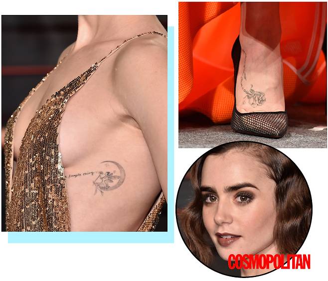 릴리 콜린스 가슴과 발목을 감싸는 듯한 타투로 은밀하게 함부로!