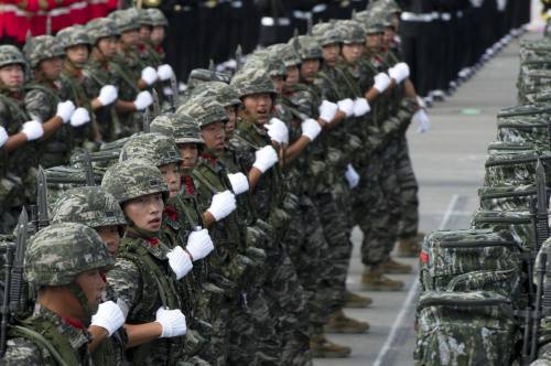 | 국군의 날 기념식에서 장병들이 행진을 실시하고 있다. 미 국방부 제공 |