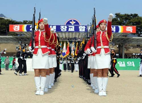 | 2014년 3월 계룡대에서 열린 합동임관식에 참가한 여군 의장대. 국방부 제공 |