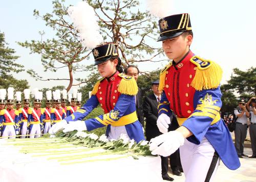 | 육군사관학교 생도들이 안중근 의사 추모행사에 참석해 안 의사를 추모하고 있다. 육군 제공 |