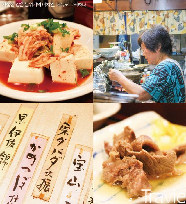 가끔은 특별하지 않아 더 특별하게 느껴지는 장소가 있다. 츠루하시 시장 골목에 위치한 작은 선술집 이치엔이 그랬다. 10석도 채 되지 않는 규모지만 그 집만의 따뜻함이 온전히 느껴진다. 낡은 미닫이문을 열면 보이는 모습이 식당의 전부. 게다가 날마다 주인 할머니가 집에서 만들어 오는 음식이 안주의 전부다.